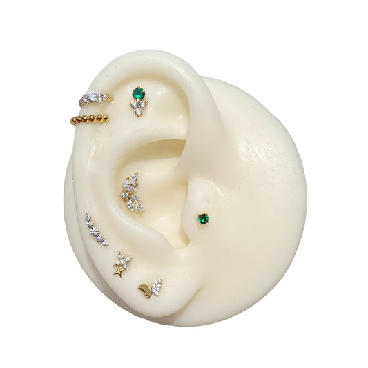 Least painful, perfect for beginners. Heals in 1-2 months with minimal maintenance. Up to 3-4 stacked lobe piercings possible.