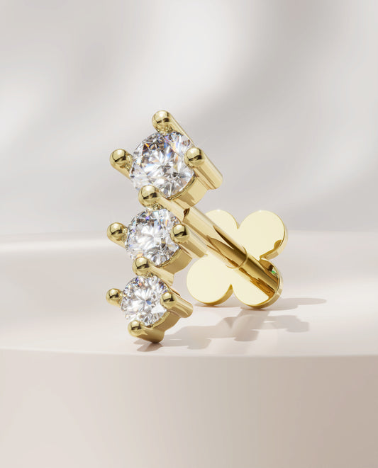 Location: This piercing is done through the soft, fleshy part of the ear, known as the earlobe. It is positioned centrally on the lobe, typically where the ear is thickest and most pliable.