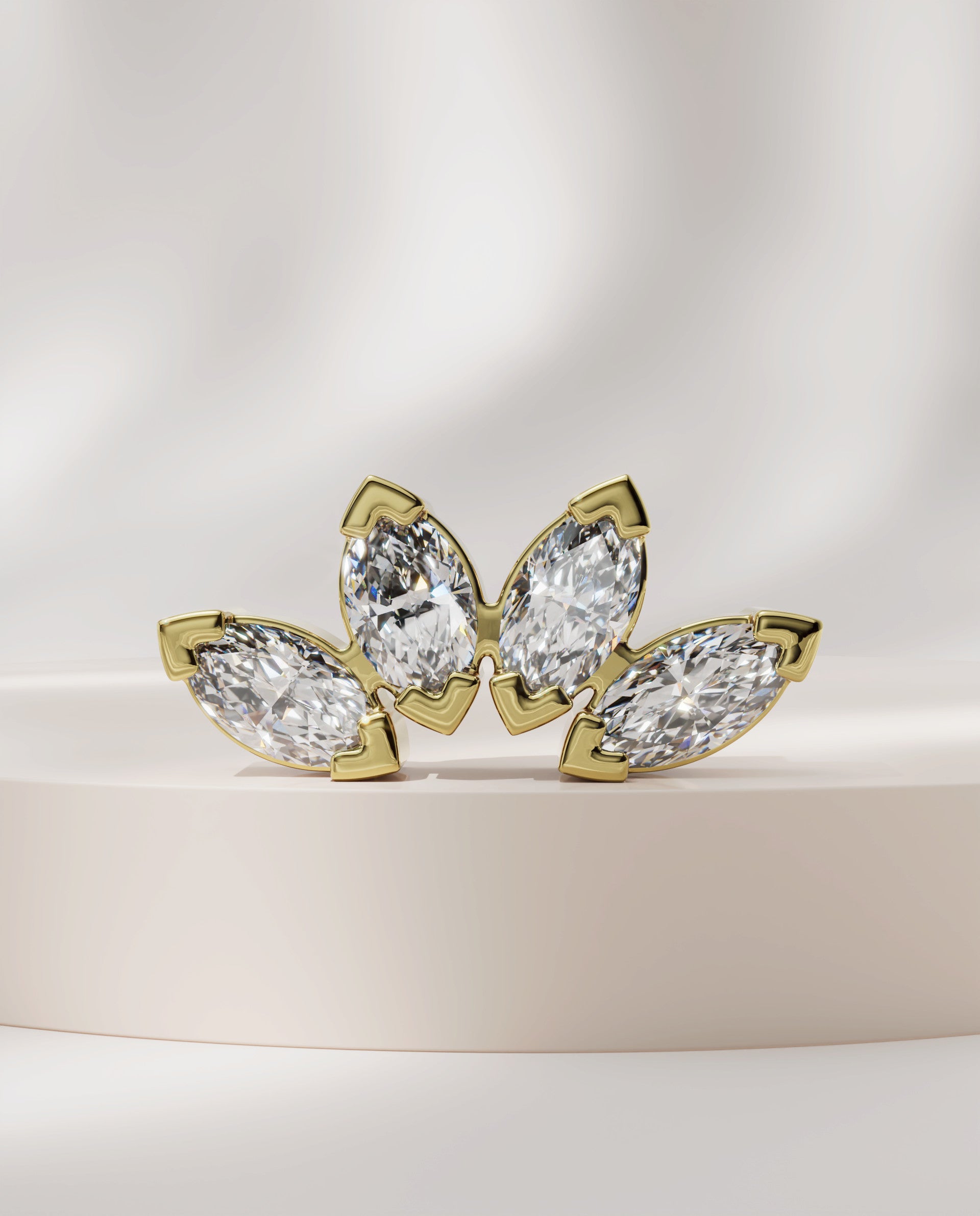Elevate your everyday elegance with the 4 Marq earring, crafted in 18K pure gold and adorned with four luminous marquise-cut zircon stones , a delicate statement of modern luxury.