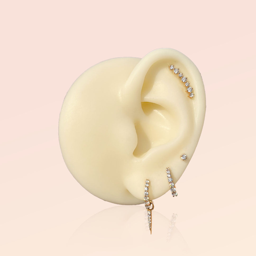 Choose from three tube sizes: 10mm, 8mm, and 5mm, to find the perfect fits you. Plus, enjoy the convenience of changing your size for free at any time. Hypoallergenic and designed for comfort (Flatback), our stud piercings are ideal for those with sensitive skin. Discover the perfect blend of luxury and versatility with our 18k Gold Stud Piercings.