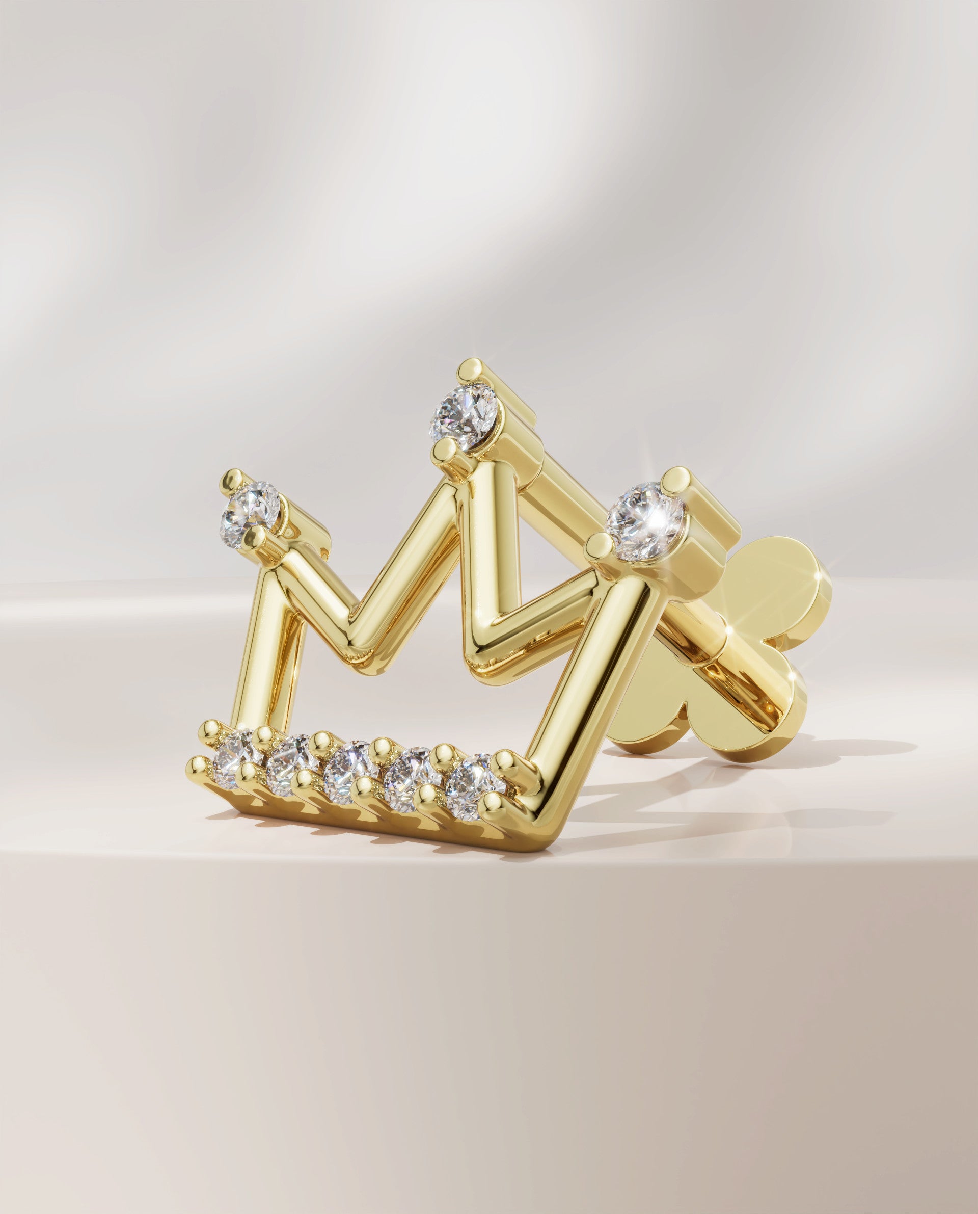 Rule your style with this 18K pure gold crown stud, set with radiant zircon stones for a look that’s royally refined.