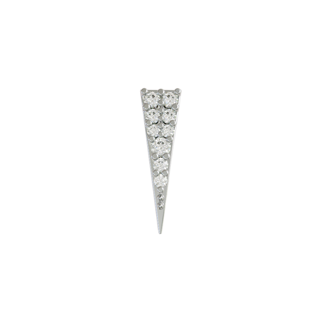 The Radiant Dagger Stud features a sleek, tapered triangular shape adorned with a gradient of sparkling stones, blending modern edge with refined elegance for a bold yet sophisticated statement.