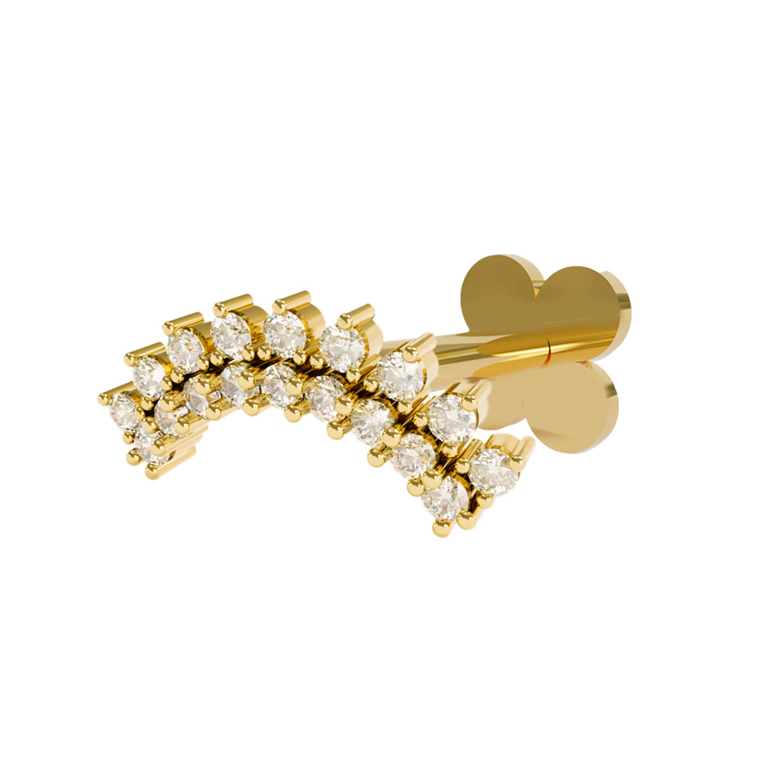 Double the brilliance , this 18K gold stud features two full rows of dazzling zircon stones for a bold, radiant finish.