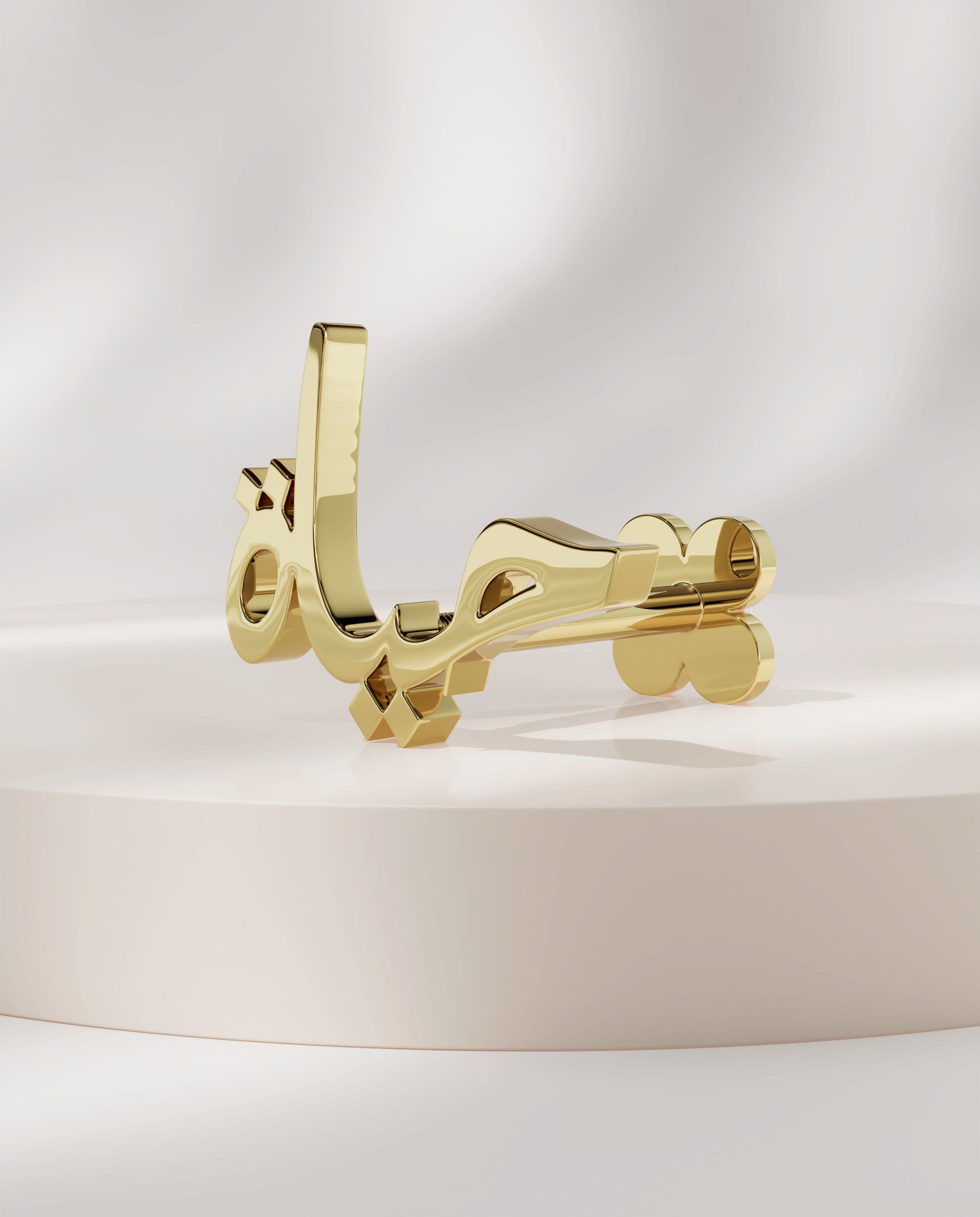 A golden tribute to life itself—this 18K earring features the word "حياة" in graceful Arabic calligraphy.
