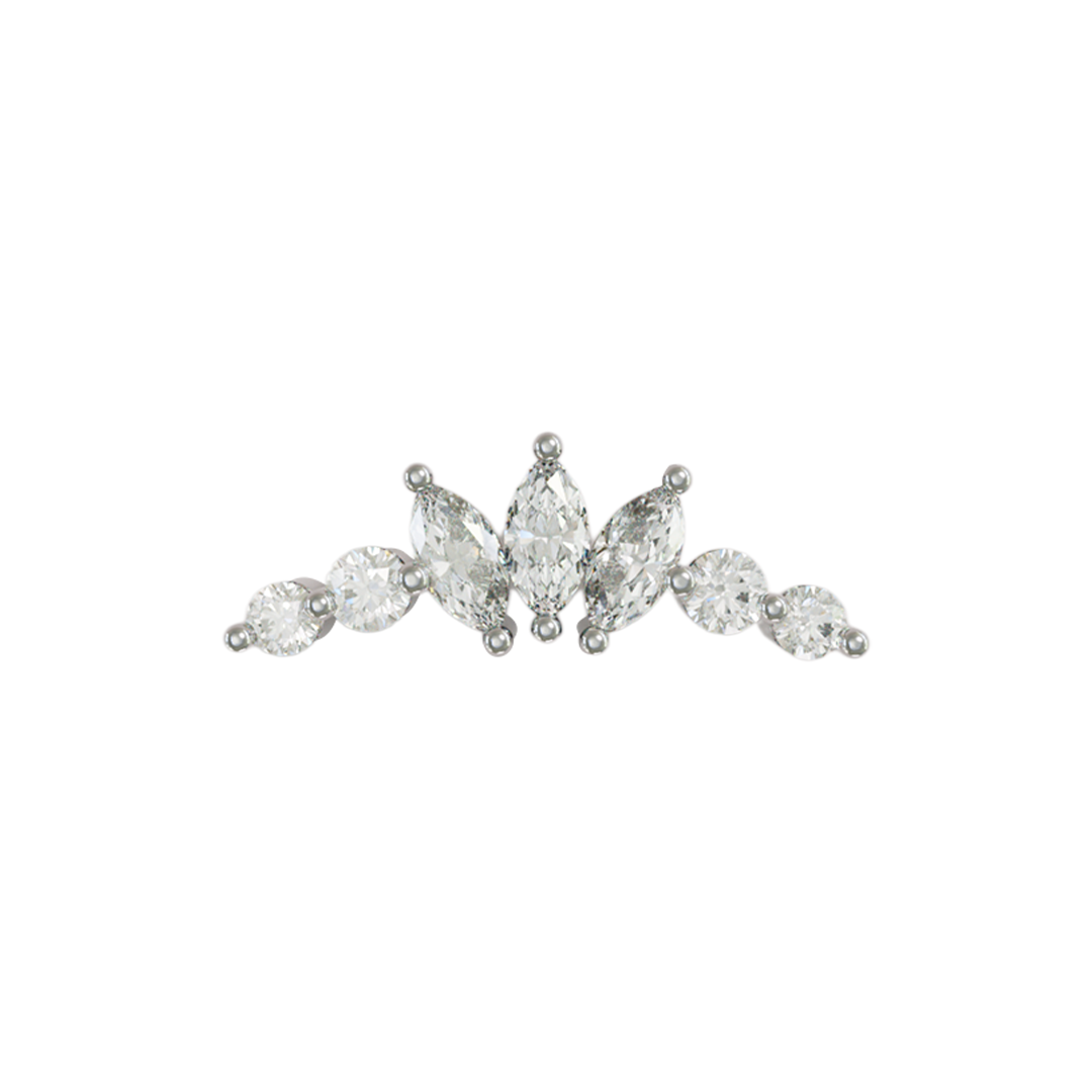 Delicately curved like a lotus in bloom, this diamond arc stud features a mix of marquise and round stones for graceful sparkle.