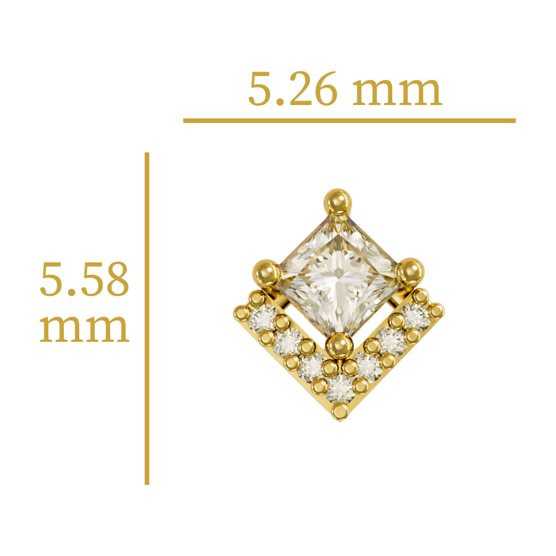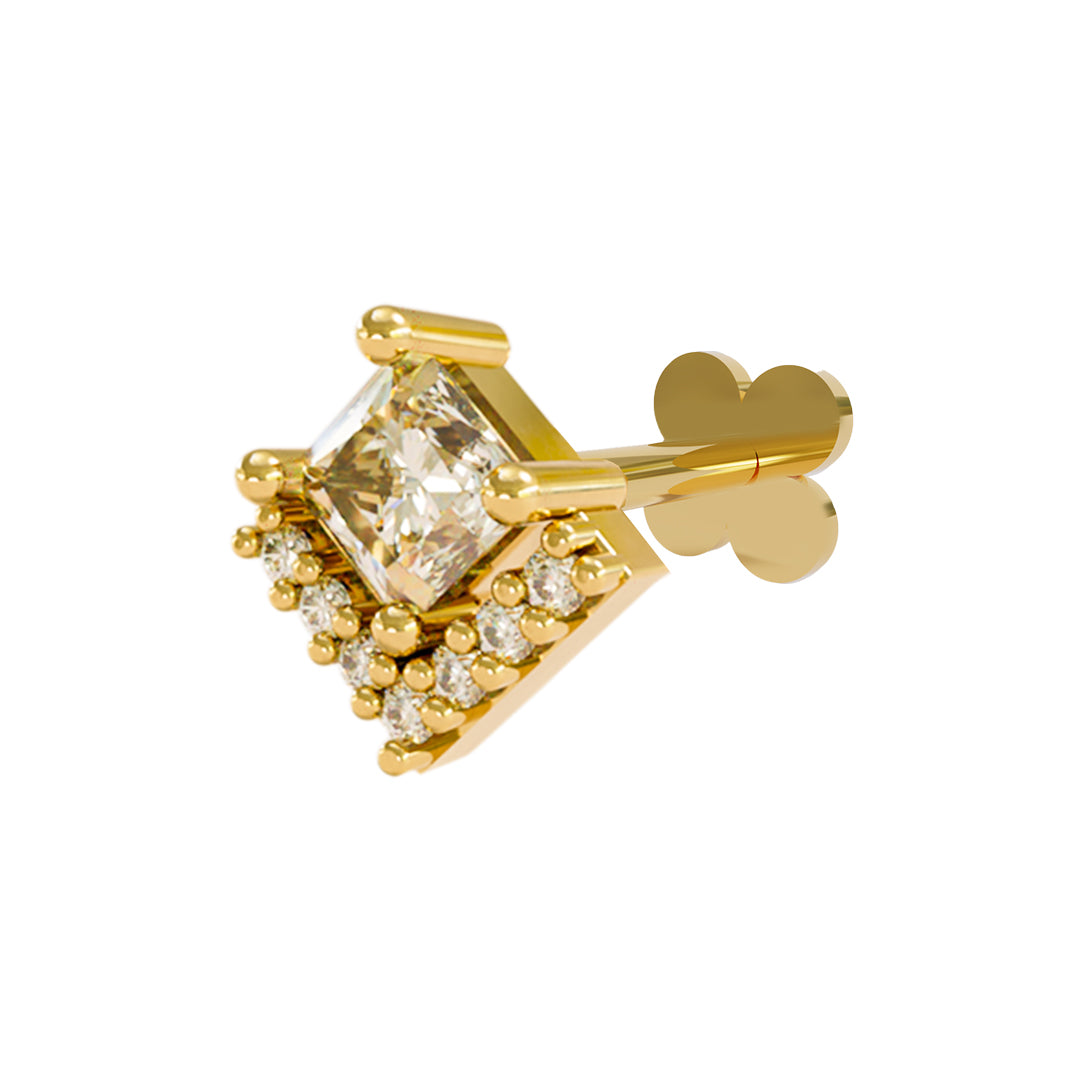 The Princess stud features a bold central zircon framed in 18K gold and accented with sparkling stones for a royal touch.