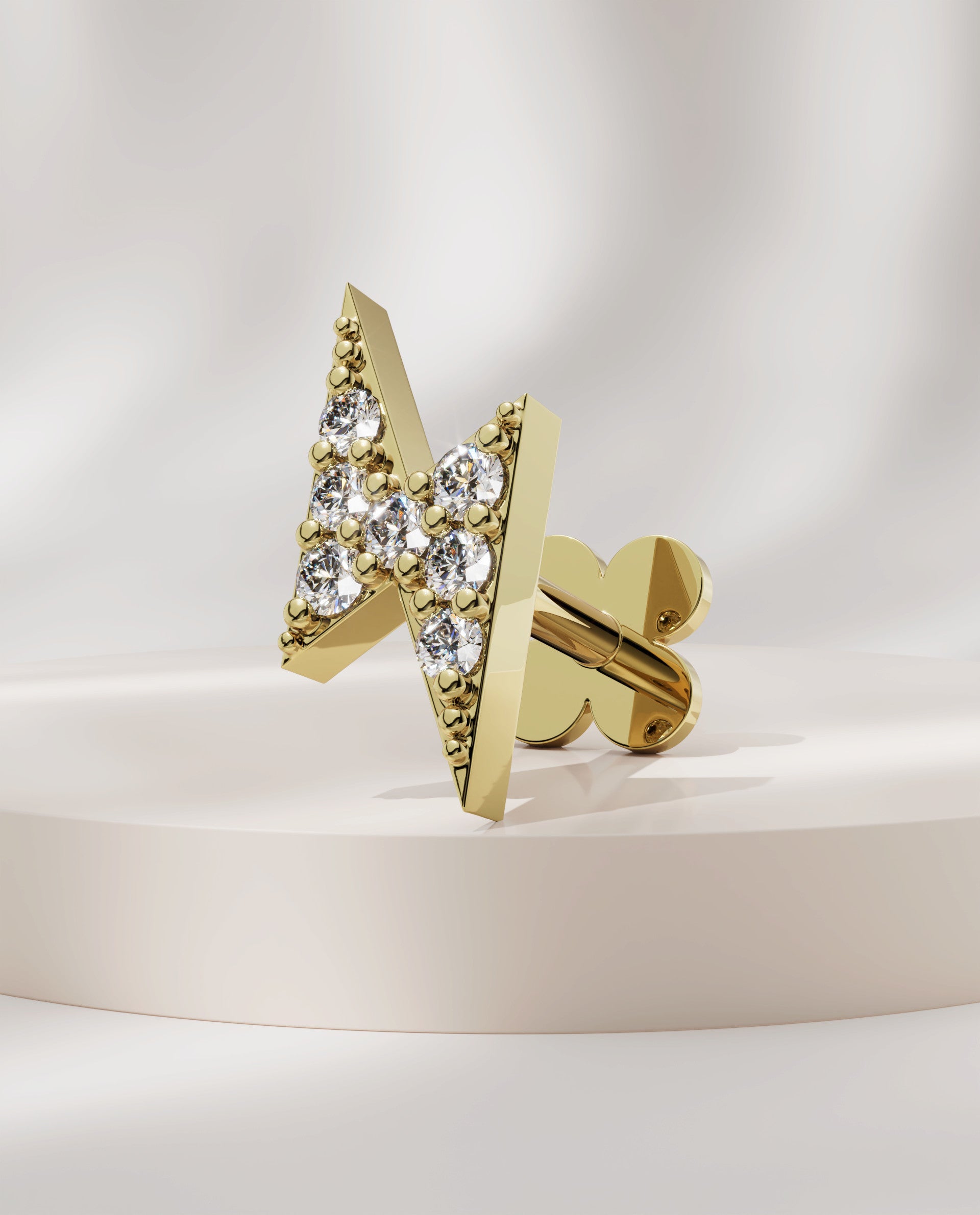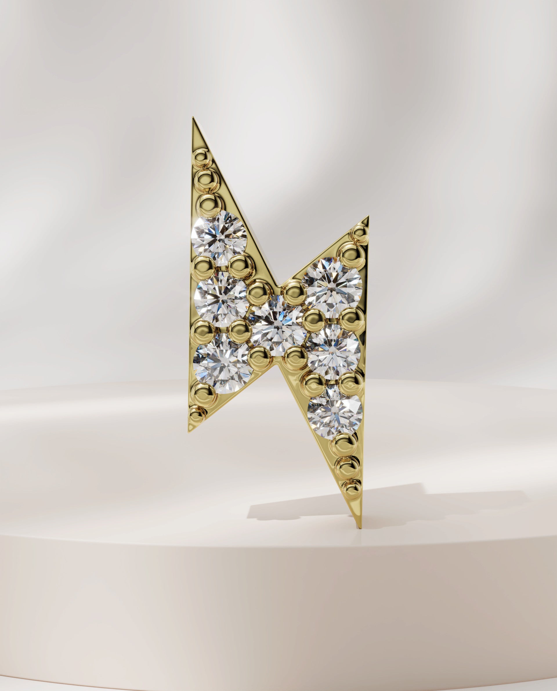 Introducing our Spark earrings in 18K pure gold, featuring a bold thunderbolt design traced with seven sparkling stones for a striking, modern statement.