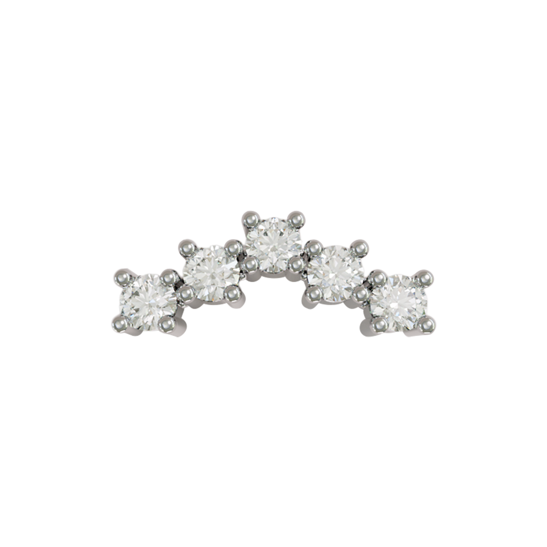 The Starlight Arc earring showcases a delicate row of prong-set sparkling stones in a graceful curve, capturing the brilliance of a shooting star and adding a subtle yet striking elegance to any look.