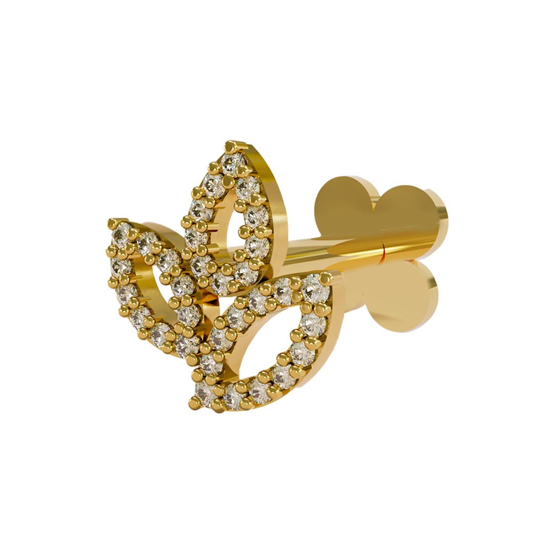 The Trevia stud is crafted from 18K pure yellow gold in a triple leaf design, each leaf highlighted with sparkling stones. A single, elegant piece that adds a touch of luxury to any look — perfect to wear alone or mix with other studs.